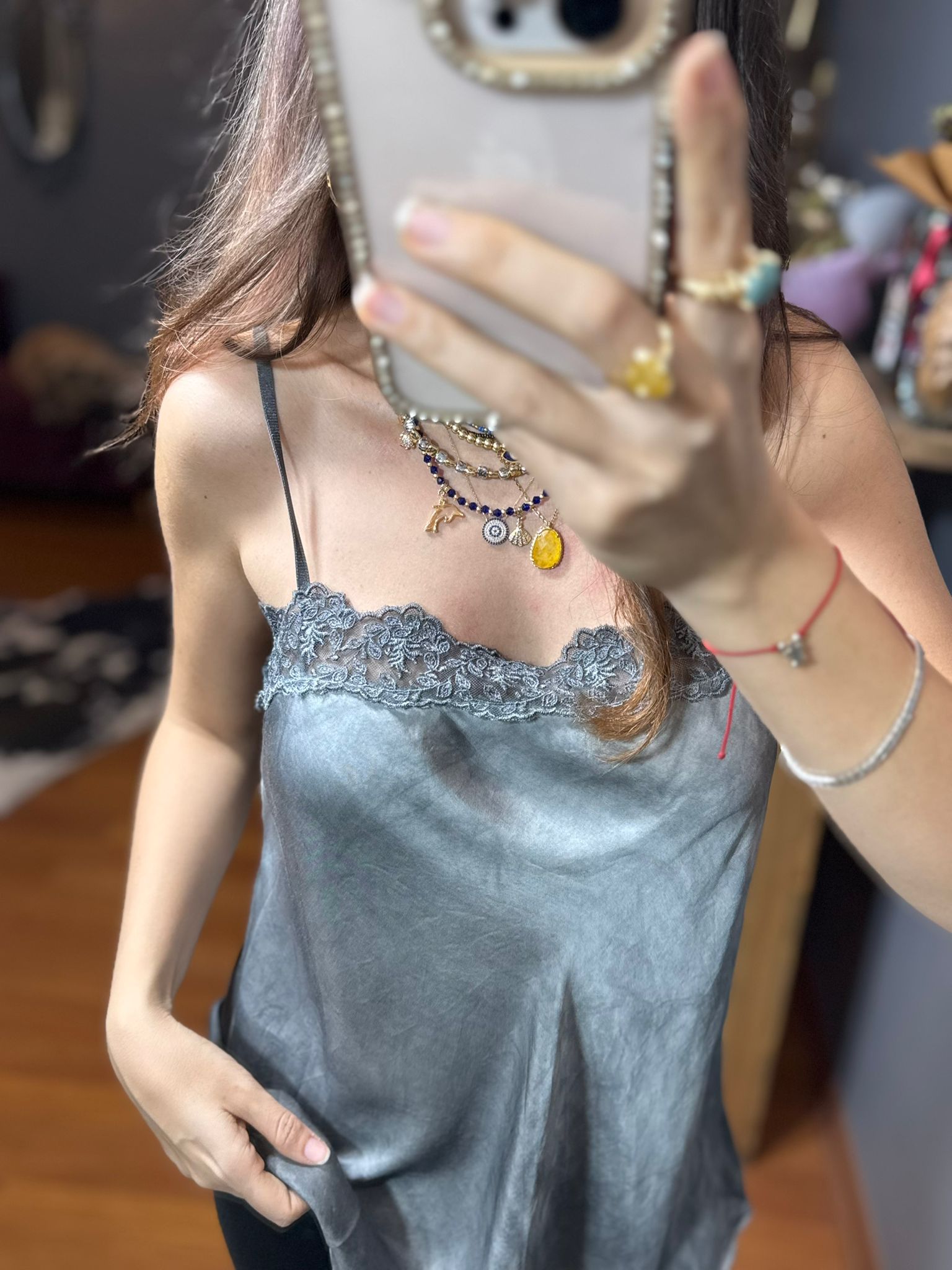 “Dantelli İthal İpek Saten Askılı Bluz-gri” için yorum yapan ilk kişi siz olun