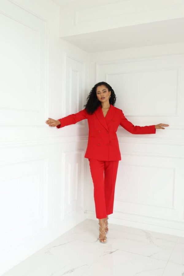 Modern ve zarif bir kadın takım elbise arıyorsanız, bu Dört Düğmeli İçi Astarlı Blazer Ceket Pantolon Takım tam size göre!