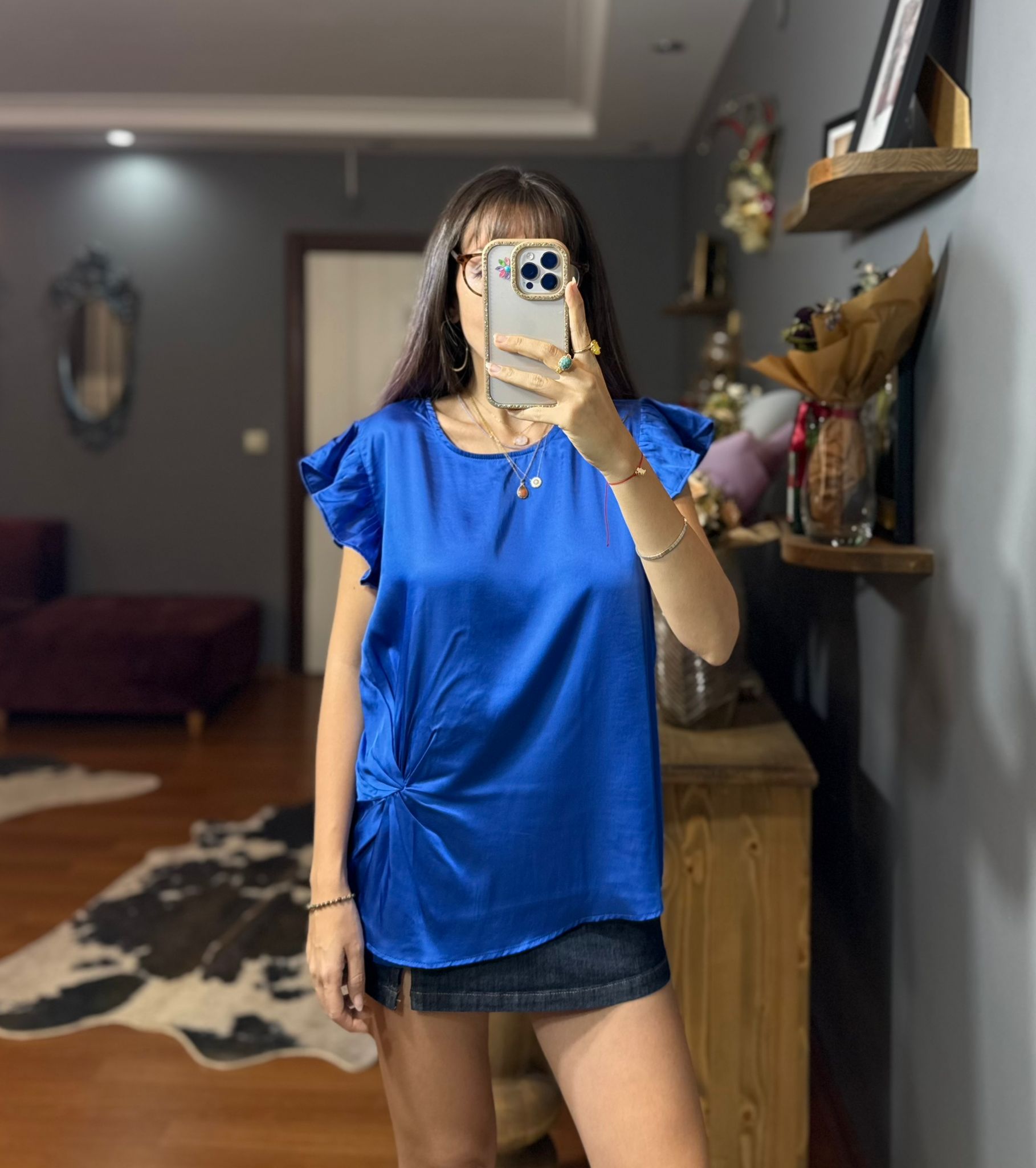 İpek Saten Kendinden Büzgü Detaylı Tasarım Bluz