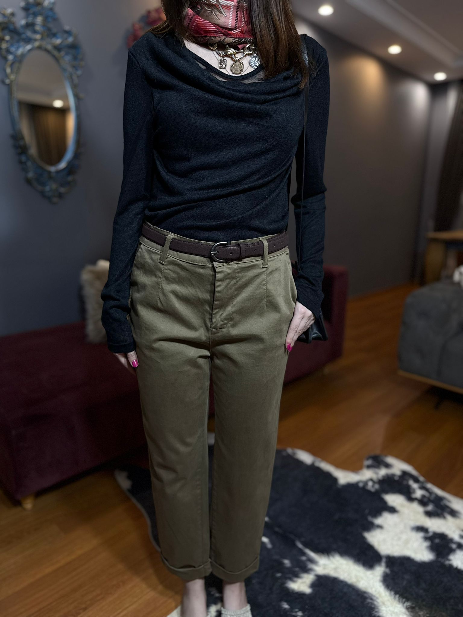 Bu haki pantolon, kişisel tarzınızın bir yansımasıdır. Düz paça kesimi, modern bir siluet çizer. Yüksek bel detayı bacaklarınızı daha uzun gösterir. Bu özellikler, her vücut tipine uyum sağlar. Bu sayede, kendinizi daha iyi hissedersiniz. Ayrıca, pantolonun yumuşak dokusu ve esnek kumaşı rahat etmenizi garanti eder. İster yoğun bir iş gününde olun, ister hafta sonu yürüyüşe çıkın, bu pantolon sizi yarı yolda bırakmaz.