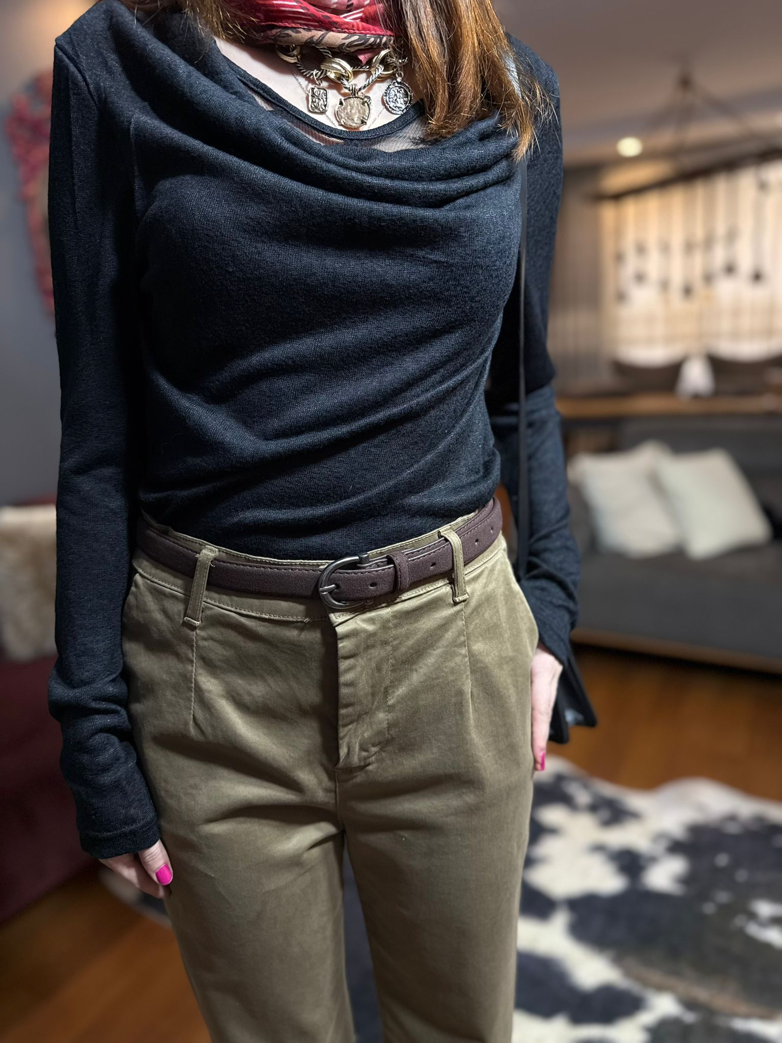 Yüksek bel düz paça haki pantolon, hem rahat hem de şık bir stil sunar. Bu zamansız parça, gardırobunuzun vazgeçilmezi olacak.