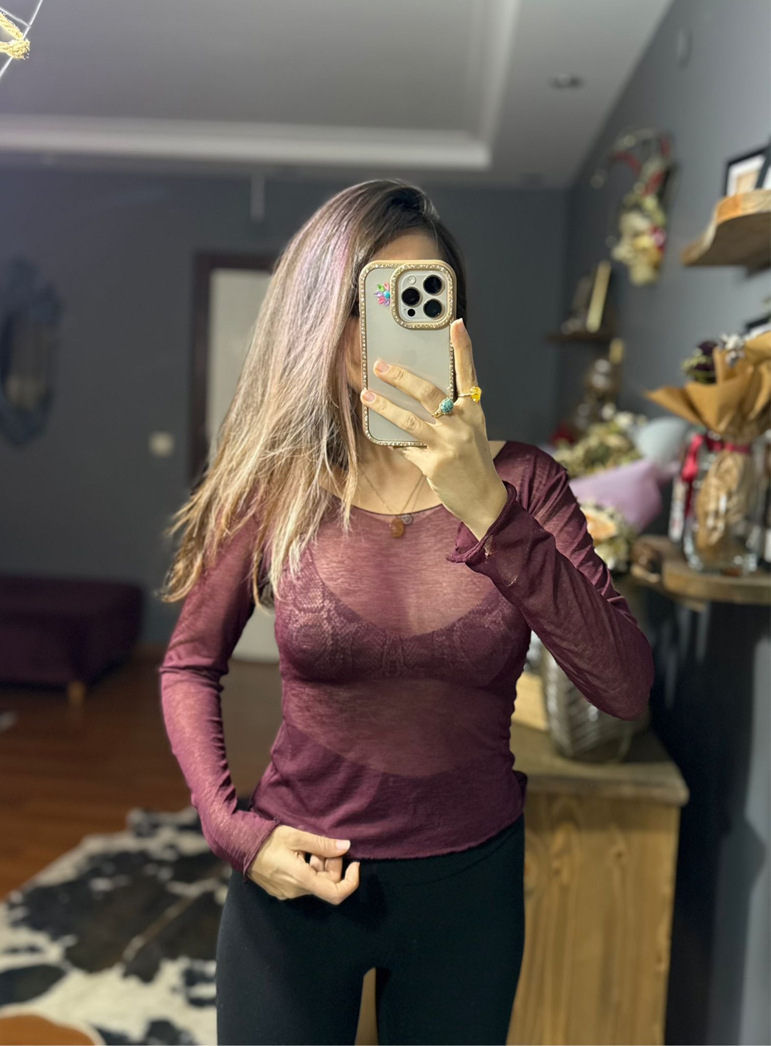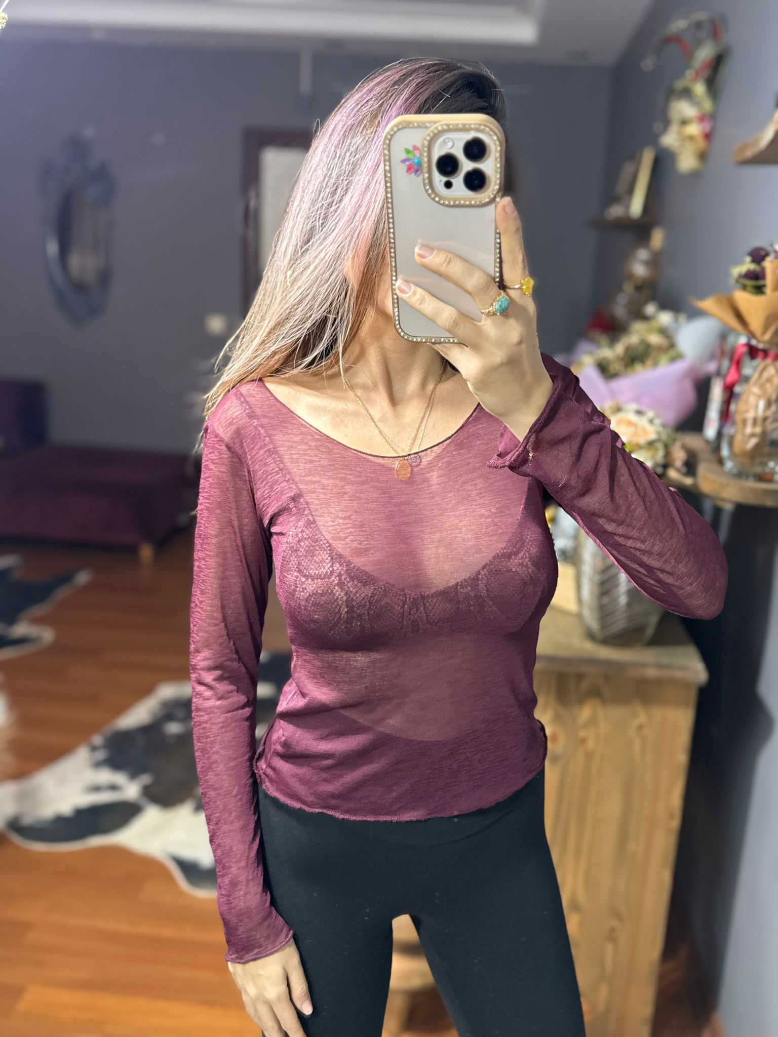 Kayık Yaka Transparan Bluz-bordo