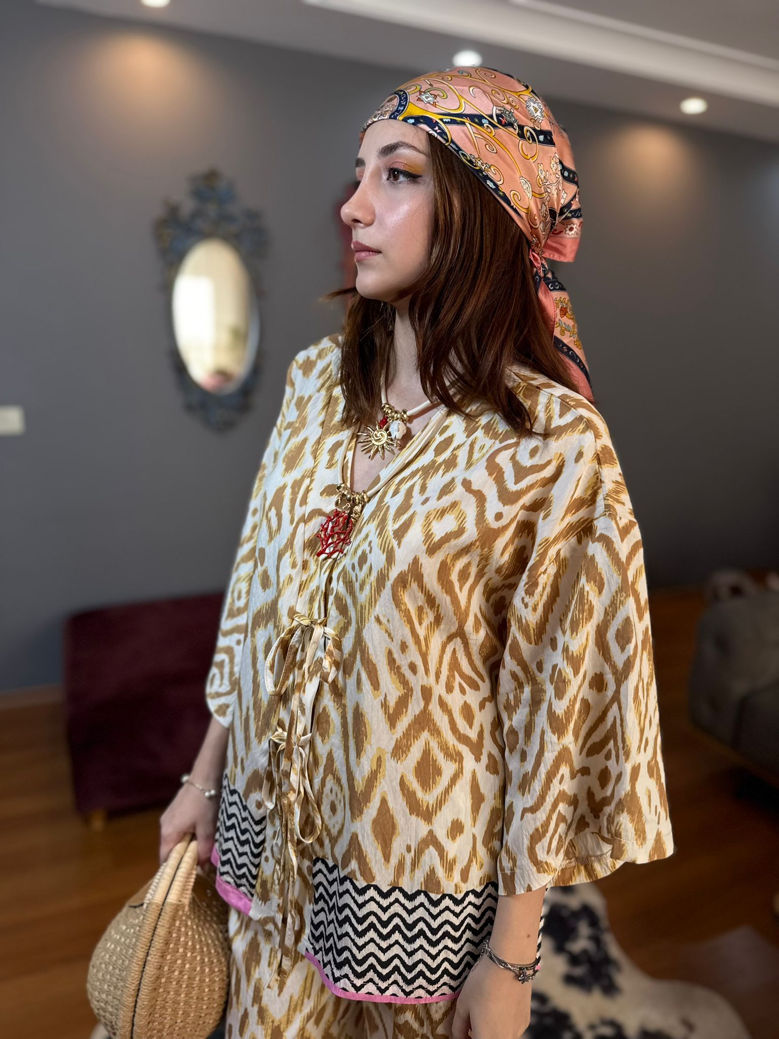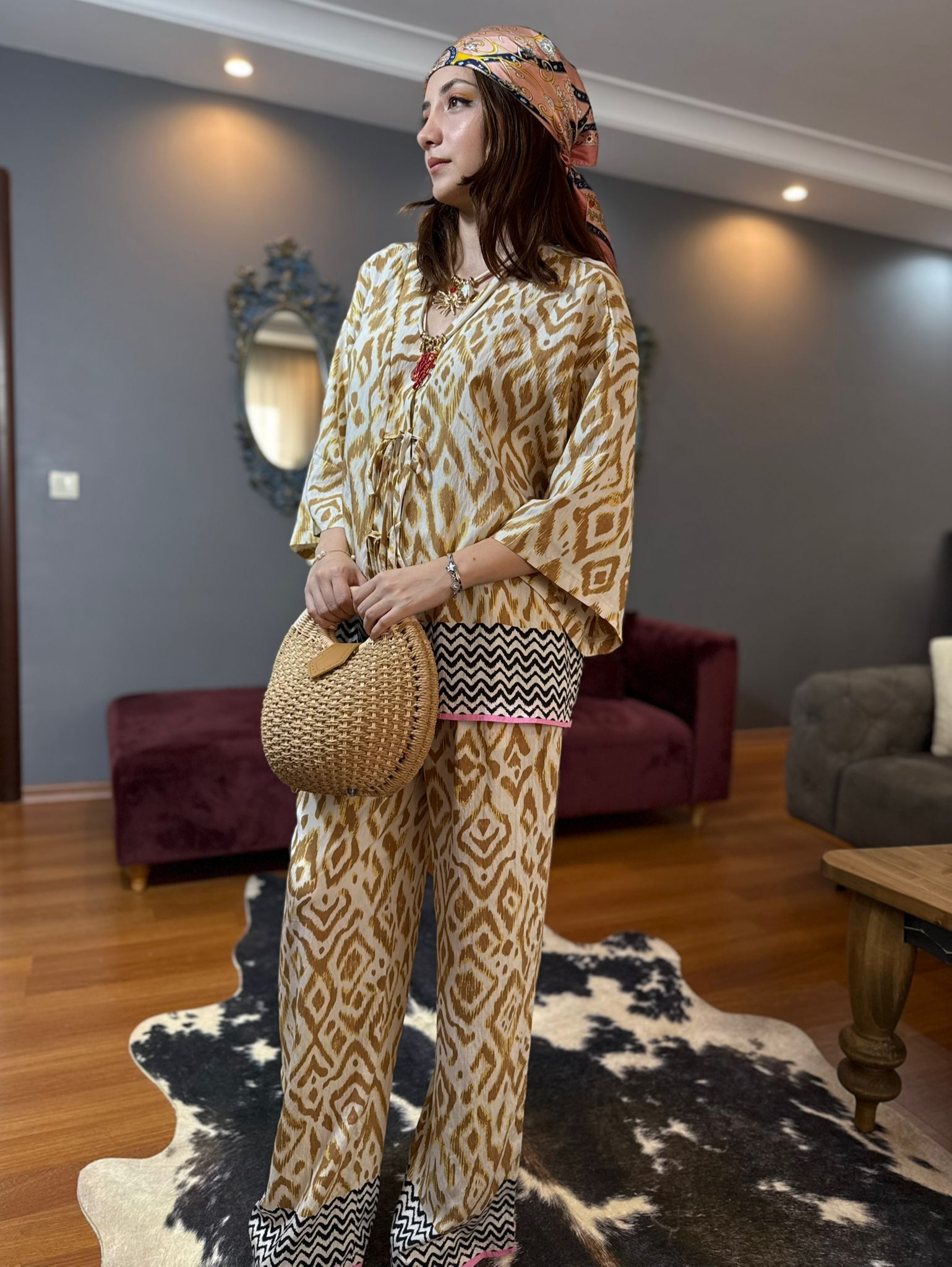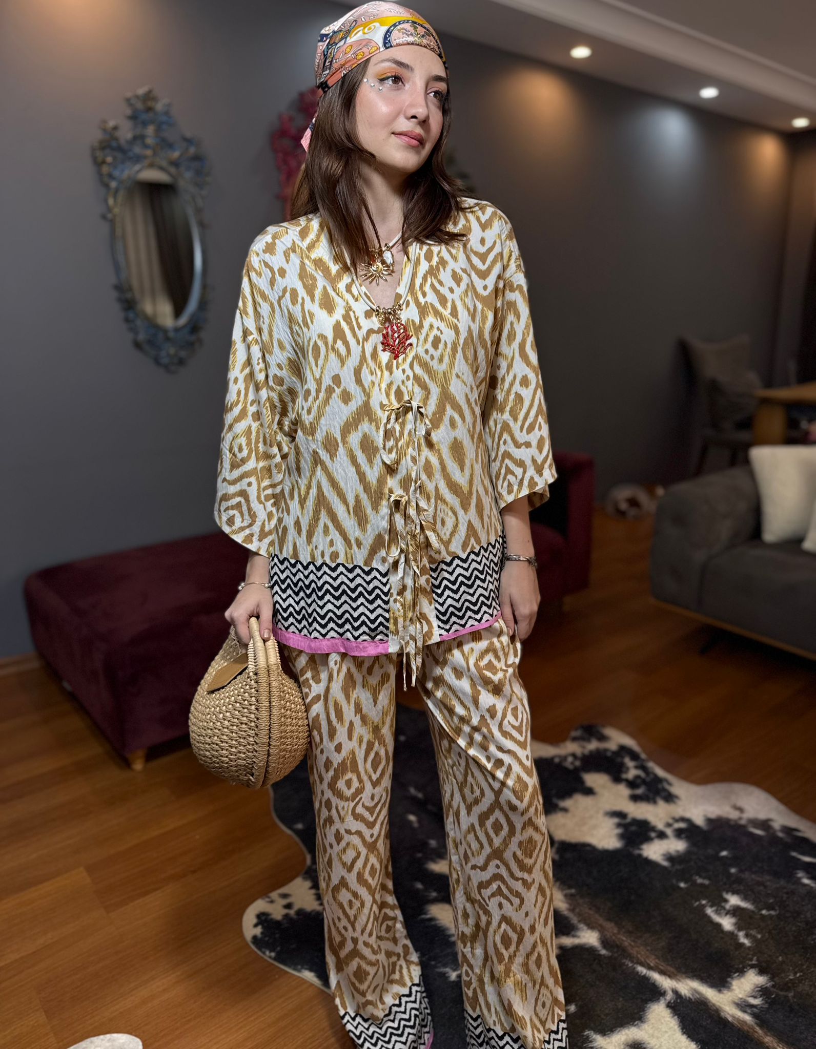 Desenli Kimono Pantolon Takım