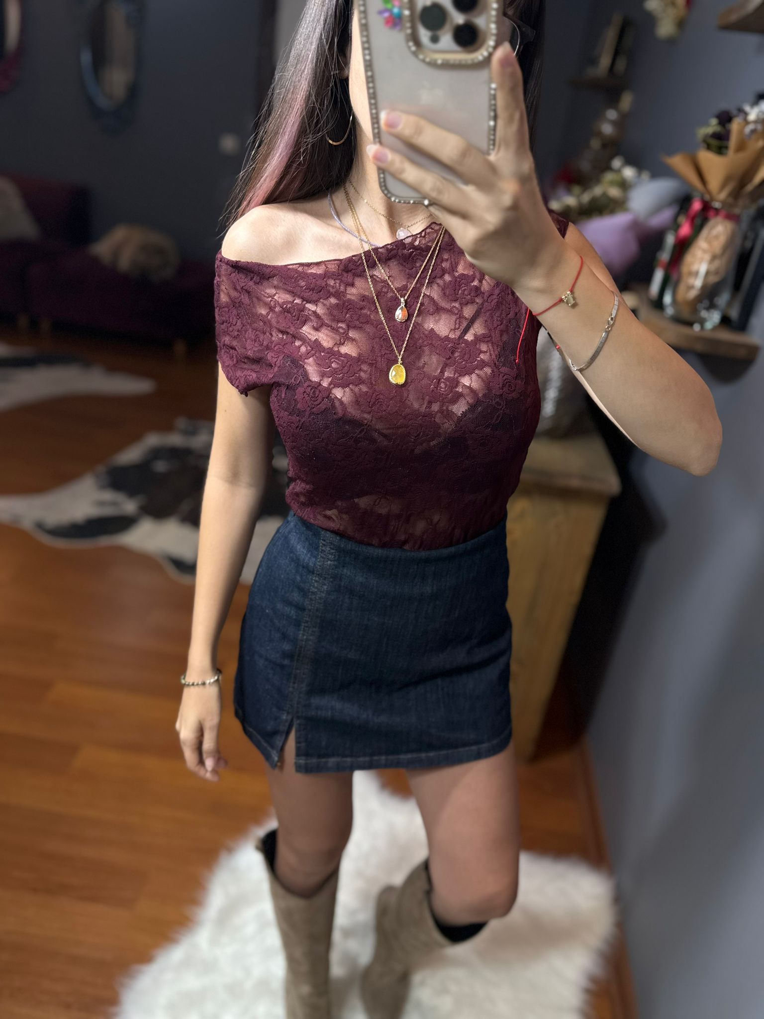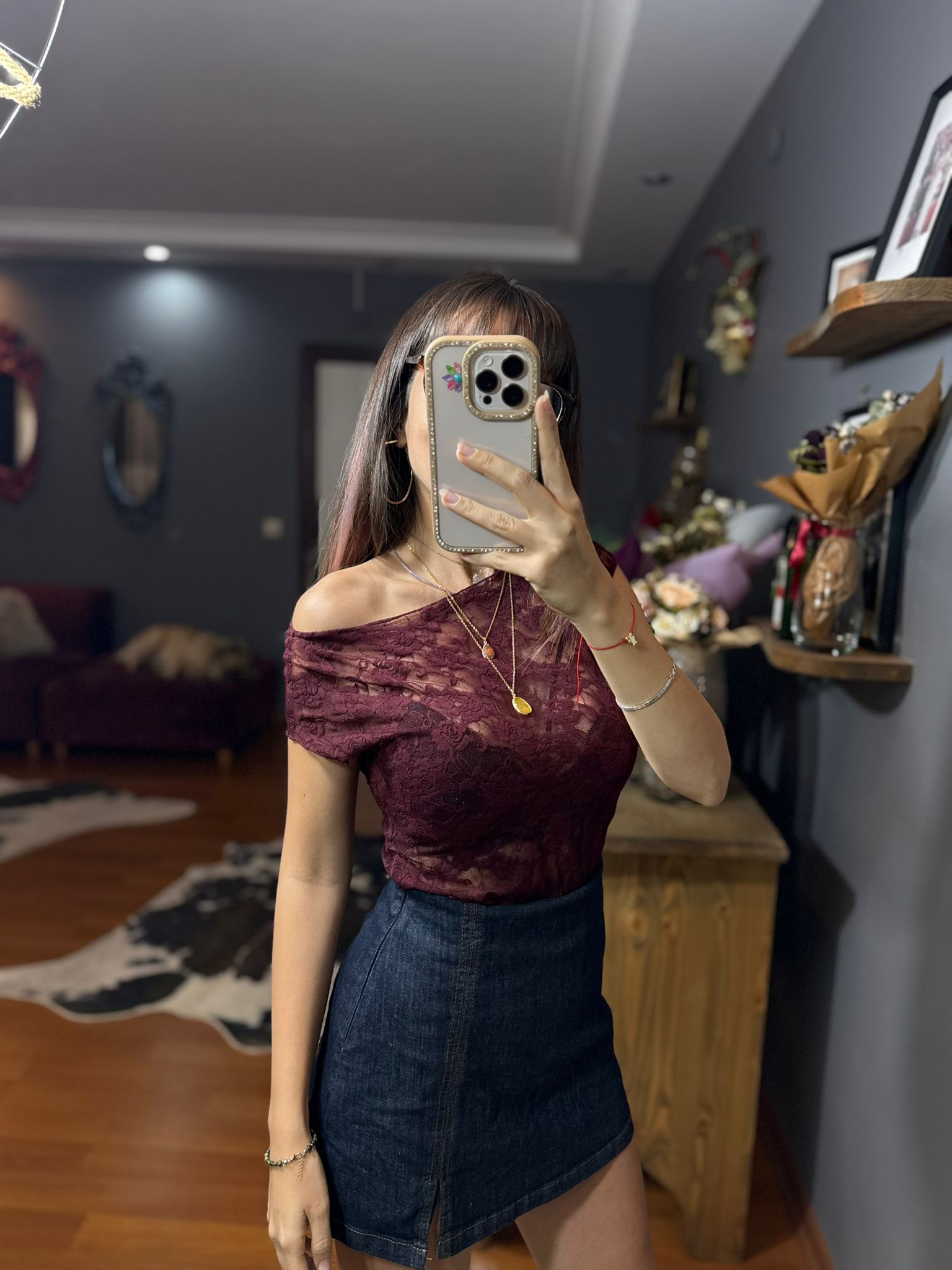 Orj mrk Bordo Dantel Detaylı Bluz