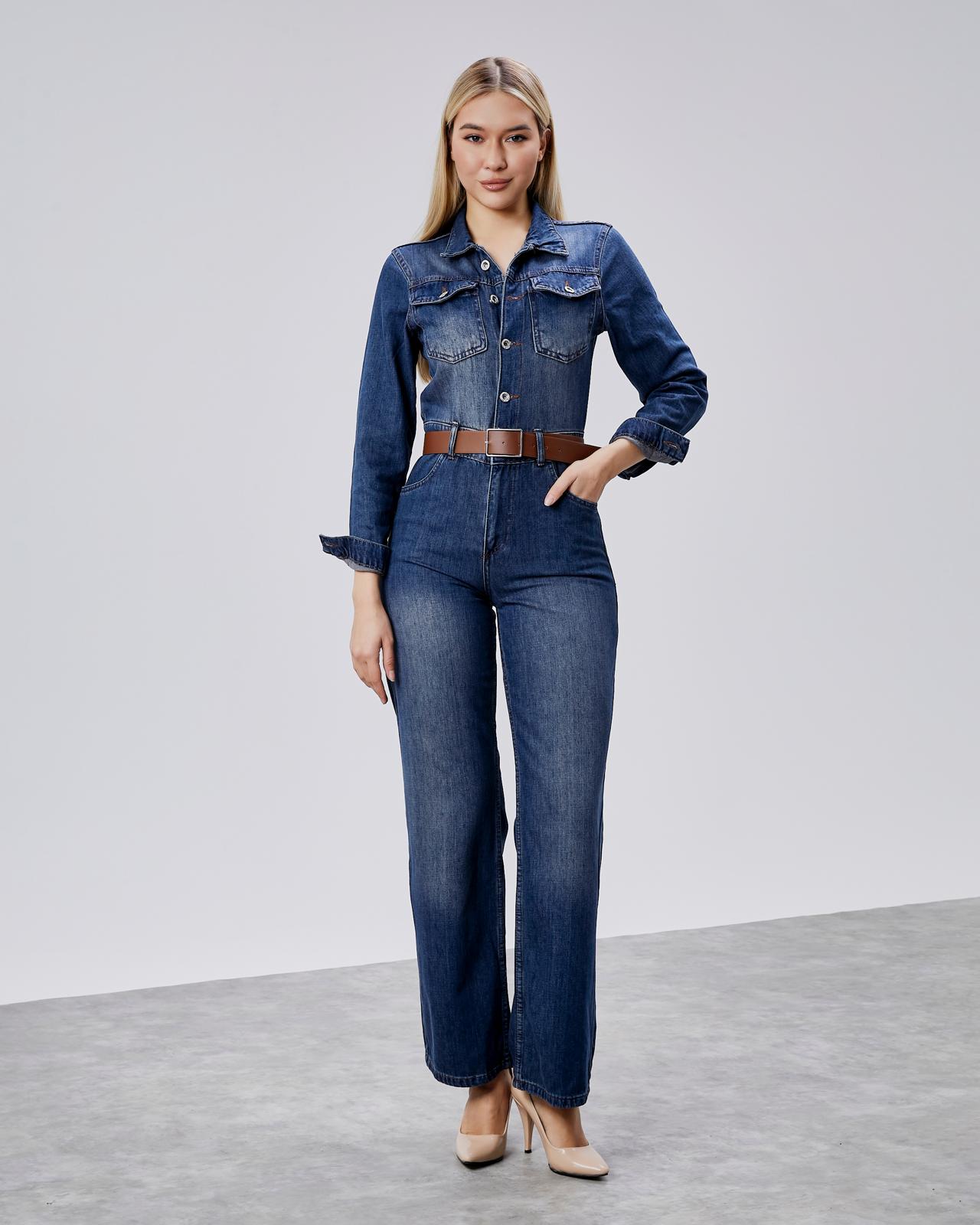 Rahat Denim Tulum-Boru Paça-taşlanmış mavi